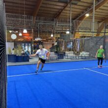 Kaum je war ein (November-)Bier so verdient wie diesmal: Für das kühle Nass mussten die sportlichen unter den IG-Mitgliedern nämlich vorgängig etwas leisten. Eingeladen hatte das Bareggcenter, und da lag es auf der Hand, verschiedene Racketsportarten auszuprobieren. Der neuste Hit ist Padel, eine Trendsportart, die Elemente von Tennis und Squash kombiniert. Im Bareggcenter sind mehrere Padelplätze eingerichtet, und die Nachfrage sei hoch, sagte Co-Geschäftsleiter Stephan Kyburz bei der Begrüssung. Kein Wunder, waren auf den Tennis- und Badmintonplätzen etwas weniger Teilnehmende anzutreffen. In den anderthalb Stunden, die uns zur Verfügung standen, konnten aber alle Sportarten ausgiebig getestet werden. Manche nahmen es spielerisch, andere zeigten sich besonders ehrgeizig und zählten fleissig Punkte. Zur grosszügigen Einladung des Bareggcenters gehörte auch ein Nachtessen im hauseigenen Ristorante Baregg mit italienischen Köstlichkeiten vom Buffet, zu denen neben dem wohlverdienten Bier natürlich auch ein Glas Rotwein passte. Die Runde war im Restaurant auf rund 60 IG-Mitglieder angewachsen; zu den frisch geduschten Sportlerinnen und Sportlern hatten sich nämlich inzwischen weitere IG-Mitglieder gesellt. Einige von Ihnen hatten den Padel-Mannschaften zugeschaut. «Es hat auch jemanden gebraucht, der euch anfeuert», erklärte sich eine Teilnehmerin, die es gemütlich nahm. Wie recht sie doch hat!